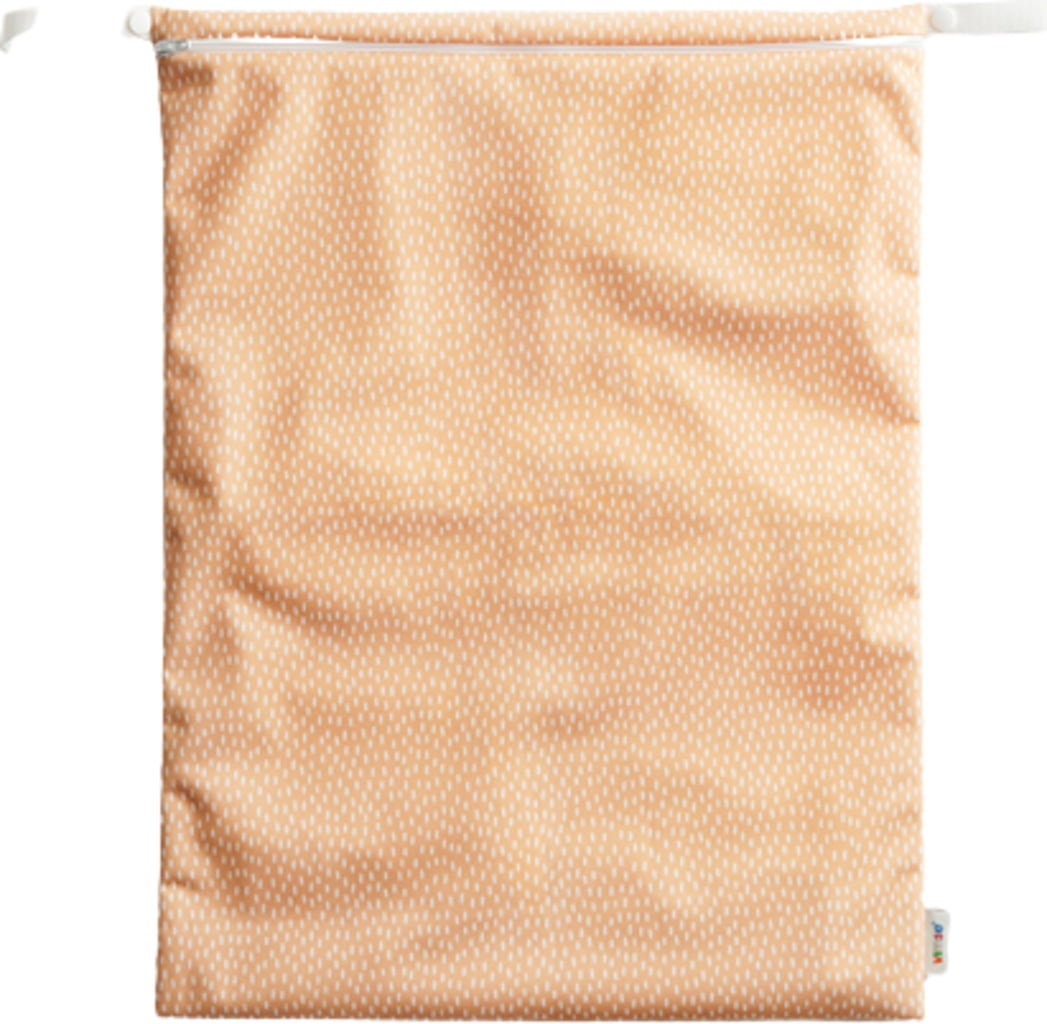 Die große Wet Bag ist für den Transport von gebrauchten Stoffwindeln oder anderen feuchten Textilien. Sie ist mit einem Kordelzug ausgestattet und kann mit einer Lasche mittels Druckknopf am Kinderwagen befestigt werden.